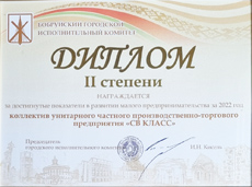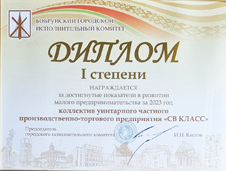 награждается СВ КЛАСС /унитарное предприятие/ за